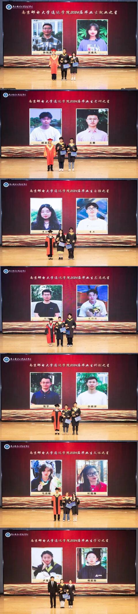 awc777万象城娱乐官网党委常委、副校长谢平和院领导为2024届毕业生之星颁发证书。为专业学习、文化体育、科技创新、志愿服务、自立自强、考研升学、求职就业等方面表现突出的14名同学颁发奖杯和毕业纪念品。